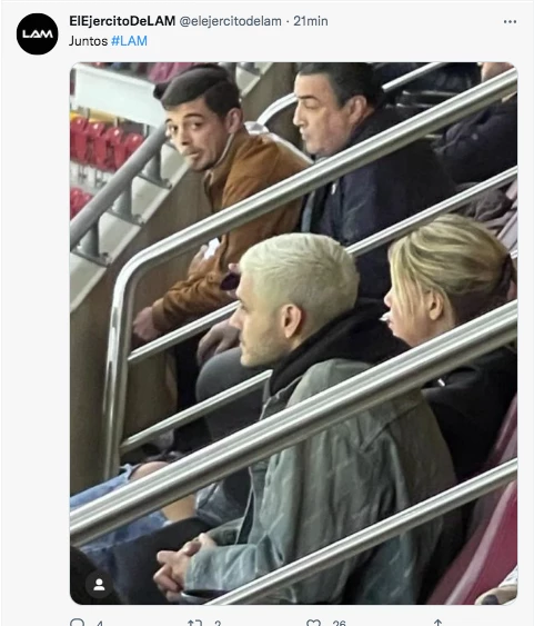 Las fotos de esa cita se viralizaron por el mundo entero y permiten dilucidar con total claridad que se trata de Wanda y Mauro compartiendo un momento y mirando con atención un campo de juego. La primera prueba surgió de la mano de LAM, donde publicaron ese registro fotográfico impensado.