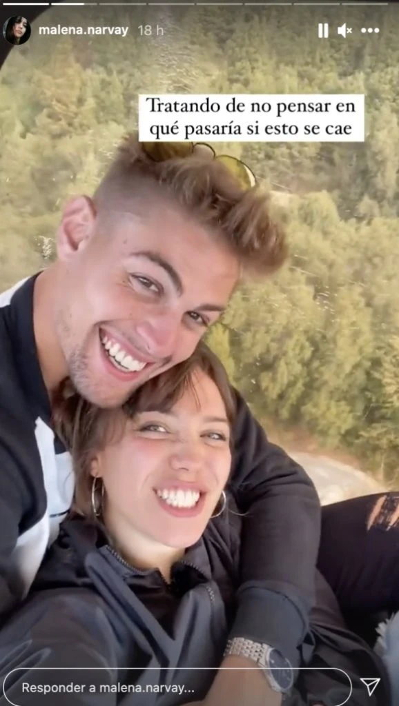 La artista no se quedó atrás, y también subió historias junto a su nuevo novio. Entre las aventuras que planearon para estas vacaciones, Malena mostró que se subieron a un teleférico y confesó que le asustó estar tan alto. Sin embargo, tuvo quién la contuviera en las alturas, por lo que en segundos el miedo desapareció.