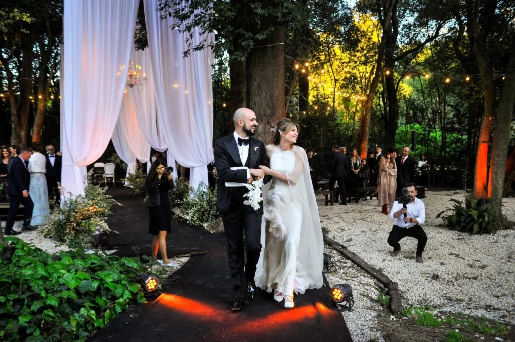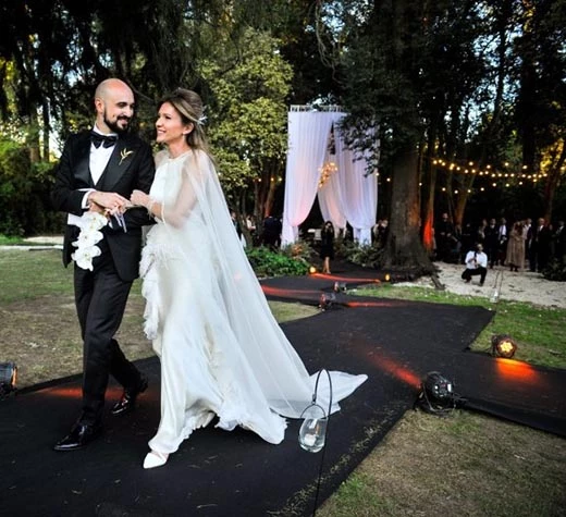 "Ella quiso ser una novia sobria y elegante a la vez. Creo que logramos el objetivo", dijo el modisto Fabián Zitta. "La ambientación italiana, con centros de mesa con orquídeas y lo llamativo fue la presencia especial de Jairo cantando el Ave María", reveló el organizador del evento.