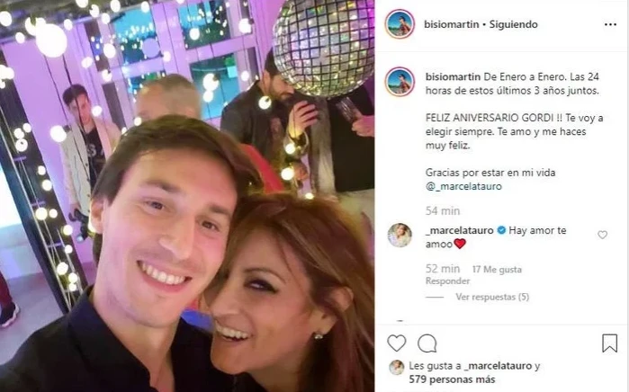El lunes 30, Martin publicó una foto en las redes sociales acompañado de un sentido mensaje de amor para su novia. “De “Enero a Enero. Las 24 horas de estos últimos 3 años juntos. FELIZ ANIVERSARIO GORDI !! Te voy a elegir siempre. Te amo y me haces muy feliz. Gracias por estar en mi vida”, escribió.