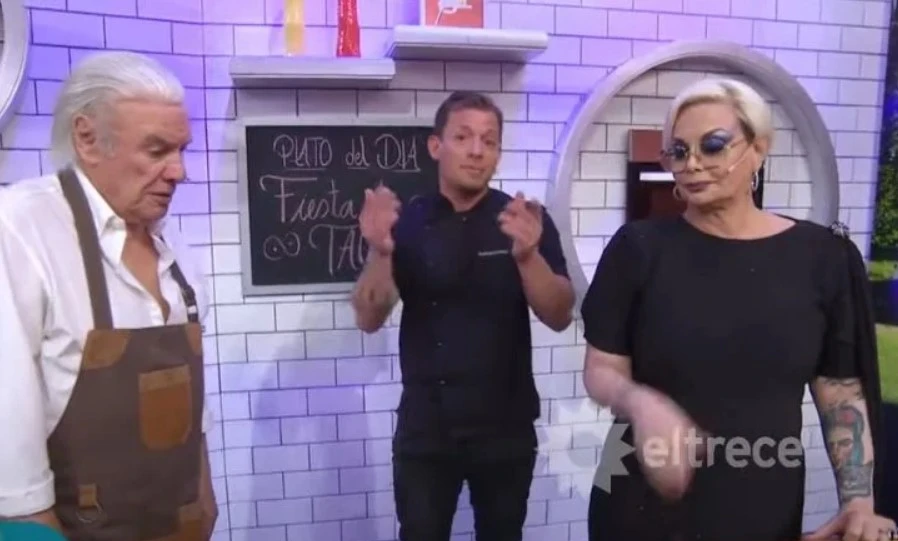 "Estamos de festejo, cumplimos un año, estoy chocho. Encima, acá encontré al amor de mi vida, que está sentada ahí", confió al aire el cocinero Santiago del Azar a Majo, al ser presentado por Carmen Barbieri, para que desarrolle una receta en Mañanísima, por El 13.