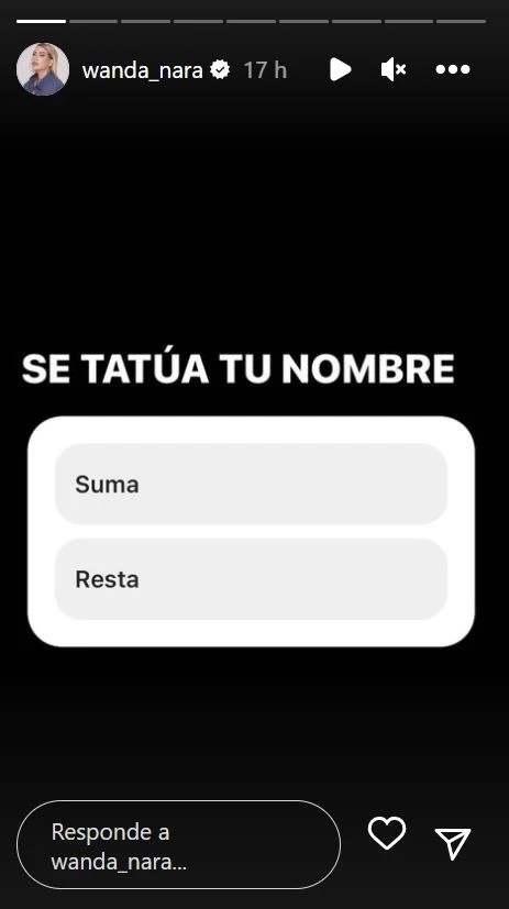 “Se tatúa tu nombre", escribió la hermana de Zaira, y dejó dos opciones para votar: "Suma" y "resta". “Te invita a una playa paradisíaca”, siguió, proponiendo las mismas alternativas. Y Wanda fue subiendo el tono. "Ventila intimidades por Instagram", puso.