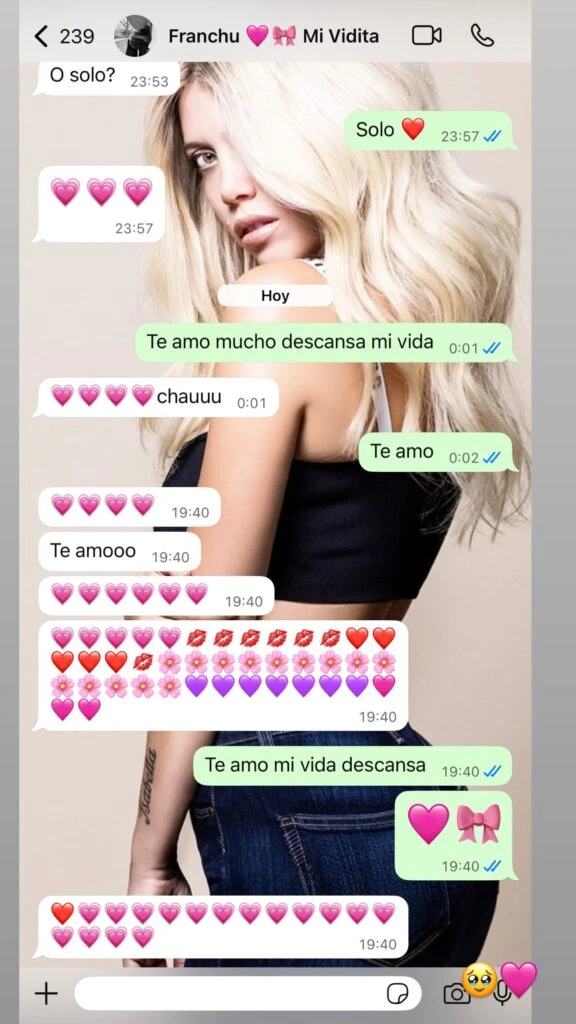 El cierre del mensaje es donde queda expuesto el amor que Wanda y su hija se tienen. “Te amo mucho, descansá mi vida”, le dice la mediática, a lo que la niña le responde con otro “Te amo” y lleno de emojis súper tiernos. Eso mismo quiso demostrar al publicar sus chats: la incondicionalidad y complicidad que comparten, más allá del escándalo con Icardi y venciendo cualquier barrera.
