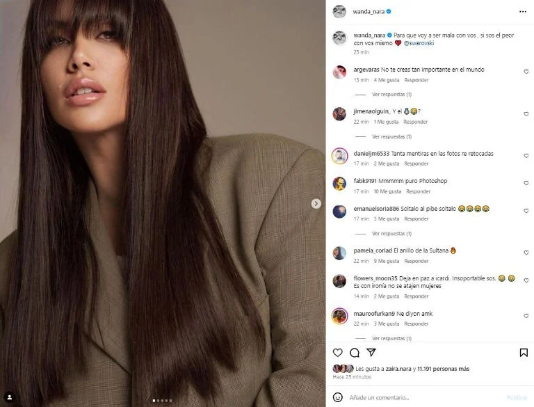 Wanda no tardó en responder y publicó una serie de fotos para una marca, acompañadas de un mensaje picante: “¿Para qué voy a ser mala con vos si sos el peor con vos mismo?”. En sus stories, dejó claro que no está en busca de reconciliación con el jugador de fútbol.