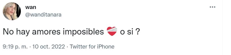 ¿Qué puso Wanda? "No existen los amores imposibles… ¿o sí?", escribió, junto a un emoji de corazón herido, quizás, la imagen de su presente sentimental. Porque, así la separación haya sido decisión suya, el movimiento implica terminar con una historia con hijas en el medio y una vida familiar de años.