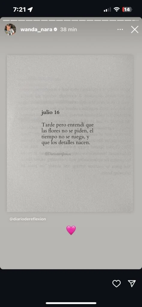 La famosa empresaria se mostró ácida contra su marido la tirarle un palito que dejó al descubierto el verdadero motivo por el que Wanda Nara tomó la decisión de no estar más en pareja con Mauro Icardi en medio de su tratamiento para la leucemia: "Tarde, pero entendí que las flores no se piden, el tiempo no se ruega, y que los detalles nacen".