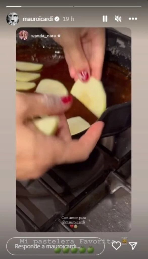 En más de una oportunidad, Wanda, en su debut como conductora de un programa de tevé local como fue Masterchef, contó que su especialidad dulce es la tarta de manzanas. Y ahora, lejos de las extensas horas de grabaciones y del ritmo laboral diario, mientras transita un período de descanso, le hizo su dulzura vedette a Mauro, su marido.