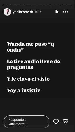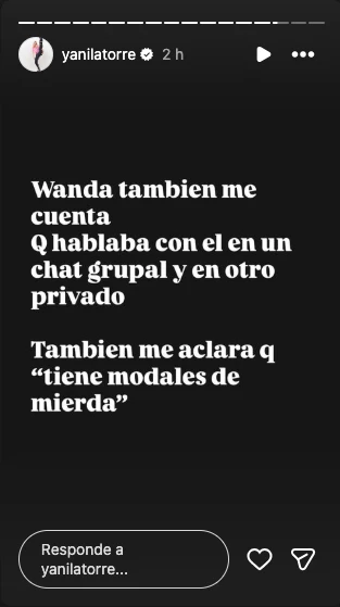 Yanina fue más allá y reveló detalles del diálogo que la expareja todavía tiene, a pesar de que lo nieguen. Según contó, Wanda le explicó que hablaba con Icardi tanto en un chat grupal como en otro privado, aunque el vínculo estaba lejos de ser cordial. “Wanda también me cuenta que hablaba con él en un chats grupal y en otro privado. También me aclara que tiene ‘modales de mierda’”, expuso.