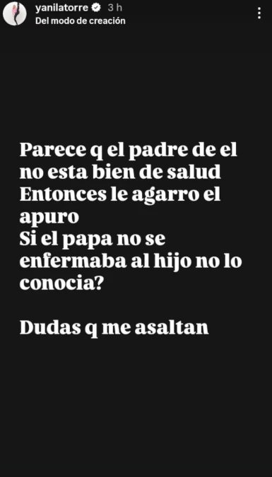“Ayer conté que le mandó una carta documento a la mamá del niño, que tuvieron mediación y que ella no se opuso, pero pone condiciones con profesionales en el medio, y que sea con entrevistas y paulatino, como cualquier vinculación”, siguió Yanina. Y agregó un dato fuerte: “Parece que el padre de él no está bien de salud y entonces le agarró el apuro. Si el papá no se enfermaba, ¿al hijo no lo conocía? Dudas que me saltan”.