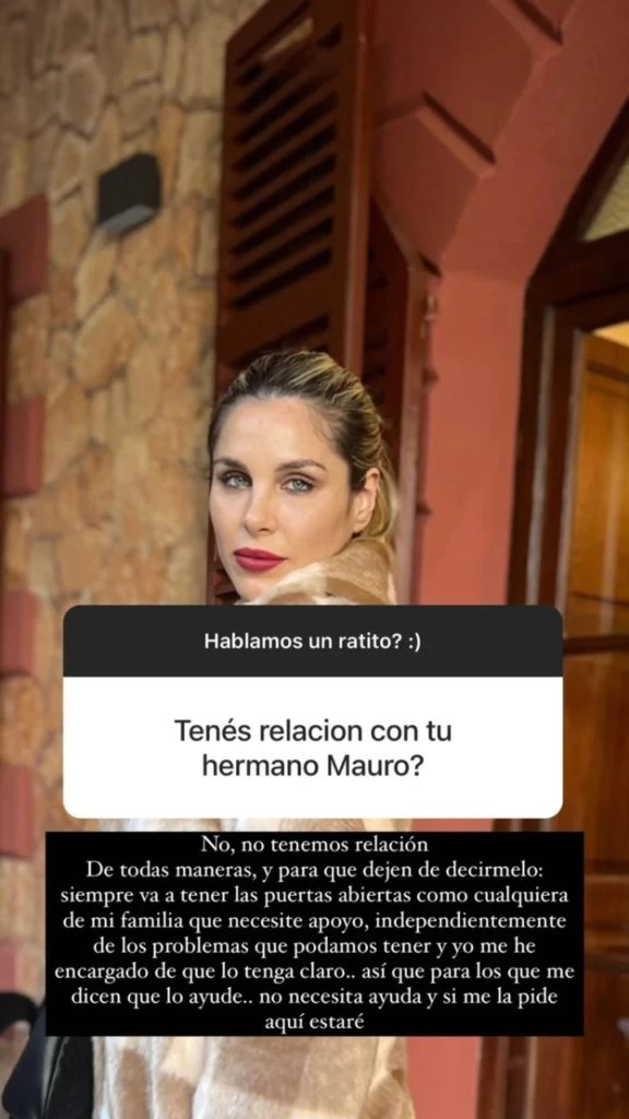 Fue Ivana quien contó: "No, no tenemos relación. De todas maneras y para que dejen de decírmelo, siempre va a tener las puertas abiertas como cualquiera de mi familia que necesite apoyo, independientemente de los problemas que podamos tener y yo me he encargado de que lo tenga claro".