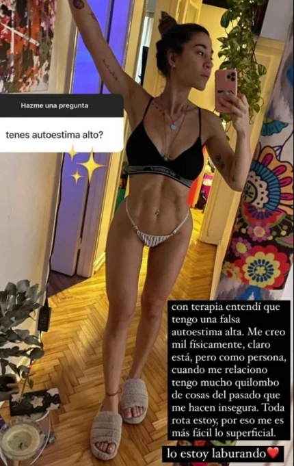 Y siguió: “Me creo mil físicamente, claro está, pero como persona, cuando me relaciono, tengo mucho quilombo de cosas del pasado que me hacen insegura. Toda rota estoy, por eso me es más fácil lo superficial. Lo estoy laburando".