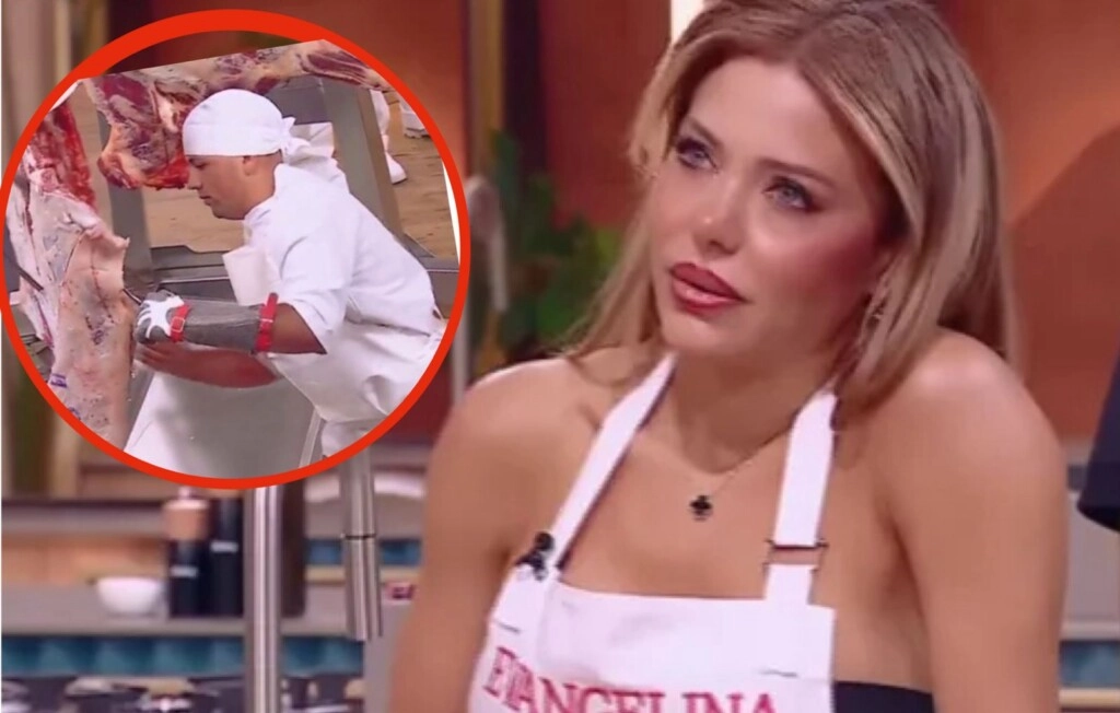 Además de su entreverado presente sentimental luego de la ruptura con Ian Lucas -dicen que está soltera, pero nunca sola-, Evangelina Anderson sufrió esta semana un momento por demás incómodo en MasterChef Celebrity. Todo sucedió cuando cuando la producción del ciclo de Telefe decidió invitar al estudio a carniceros con varias media res para faenar.