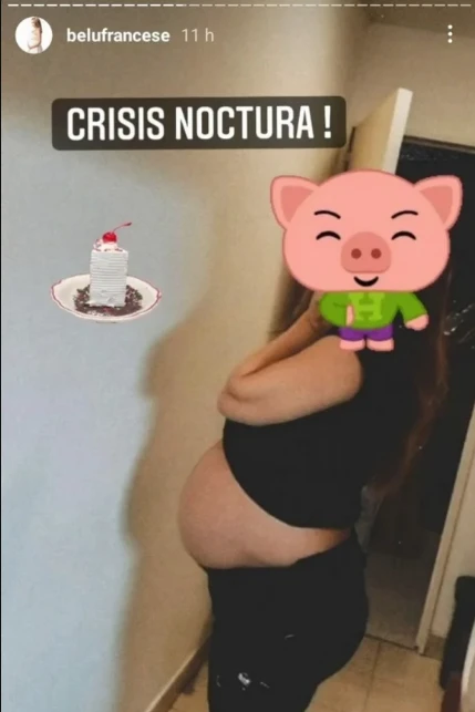 Está embarazada de 8 meses. Y la está pasando mal Belén Francese. Así lo relató en sus historia de Instagram, donde afirmó que le cuesta mucho dormir de noche. “Es casi imposible”, dice por su panza. "Mi propia respiración no me deja ni dormir", completó en una serie de tres posteos.