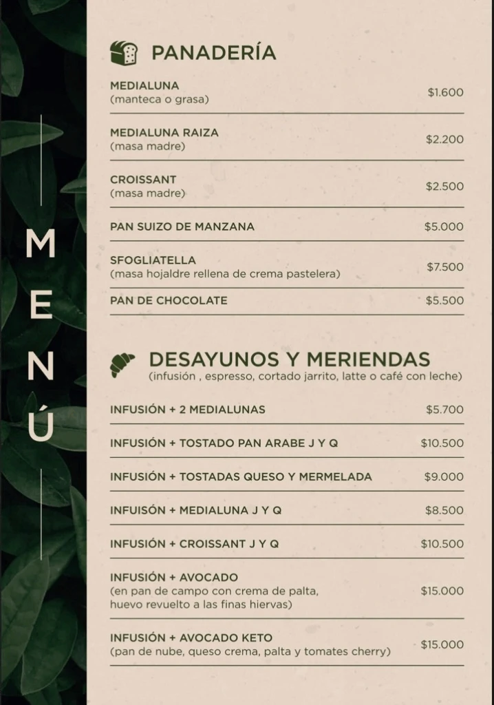 Para quienes prefieren algo salado, Raíza ofrece medialunas, croissants, panes especiales, sándwiches clásicos y otros más gourmet, con precios que van desde los $8000 hasta los $16000. También hay desayunos y meriendas armadas en formato combo, que incluyen una infusión y algo dulce o salado, ideales para compartir.