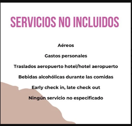 El eje de toda esta situación peculiar se encuentra en la aseveración de que el turista tendría todo resuelto. ¿Por qué? En otros posteos, Stephanie agregó información contradictoria y sostuvo: “Servicios no incluidos: aéreos, traslados aeropuerto/hotel, hotel/aeropuerto, gastos personales, bebidas alcohólicas durante las comidas, early check in, late check out, ningún servicio no especificado”.