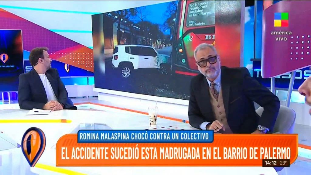 “La noticia que cambió los noticieros de la primera mañana fue el insólito accidente de Romina Malaspina, porque el colectivo estaba estacionado. Eso es lo que llamó poderosamente la atención. Recién escuchaba que aparentemente, el auto habría patinado con un vómito de ella” apuntó Adrián Pallares.