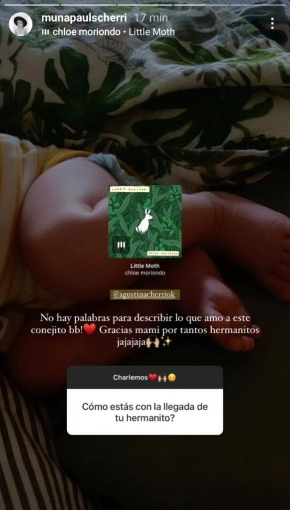 Más abajo, Muna continuó: “Gracias mami por tantos hermanitos jajaja". Sin dudas, la hija maypr de Agustina es toda una mujercita que ayuda, cuida y disfruta de la llegada de Bono. Cabe recordar que, tras el nacimiento del pequeño, ella ya había hecho un posteo dándole la bienvenida a la familia.