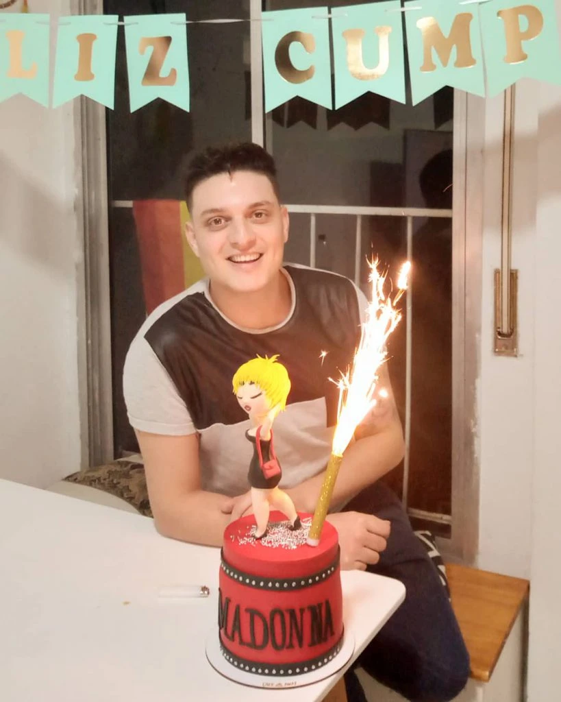 Lejos del escándalo, uno de los participantes que está en la semifinal del reality pastelero, Damián Pier Basile cumplió años en cuarentena y una de sus compañeras y amiga, Agustina Guz, le envió una espectacular torta de Madonna.
