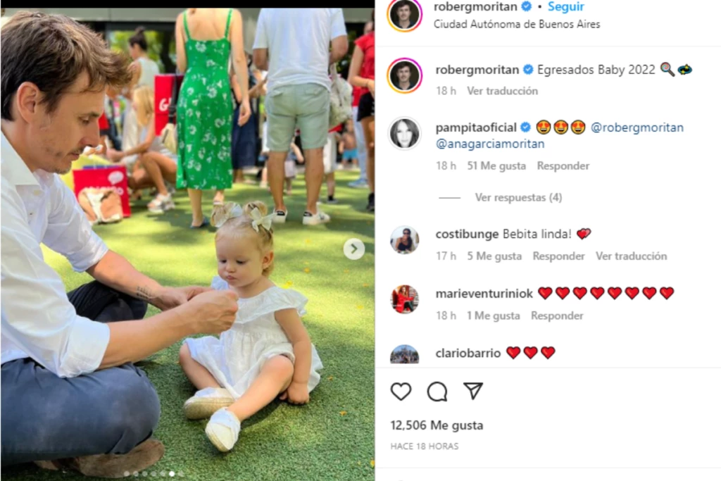Ana tiene tan solo un año y desde el instituto donde asiste le dieron un diploma y hasta ropa de una reconocida marca infantil. A la nena se la pudo observar con un vestido blanco y dos colitas con moños también de color blanco. Sus papas también decidieron por ese color, Roberto fue con una camisa y Pampita eligió un hermoso vestido para estar a tono con su familia.