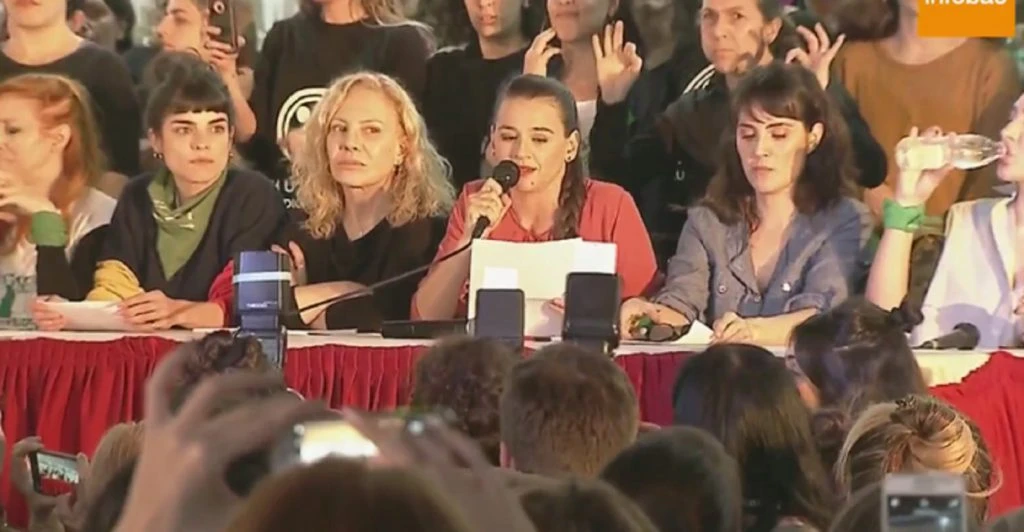 Ya se había anunciado que a partir de las 18:30hs el colectivo de Actrices Argentinas, acompañadas por otras 60 organizaciones que integran autoras, escritoras, directoras, técnicas de cine, bailarinas y trabajadoras de otros espacios de la cultura, darían un comunicado de prensa para hacer visible otro caso de acoso laboral, que sufrió, en este caso, la joven Anahí de la Fuente.