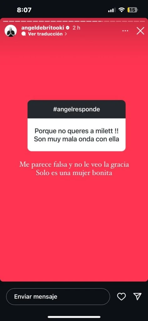 Ahor bien, tras las polémicas con Milett y su dura respuesta sobre el rol de la modelo en el Cantando, Ángel de Brito decidió contar el verdadero motivo por el que no se banca a la novia de Marcelo Tinelli. Todo se dio en un posteo que compartió en su Instagram.