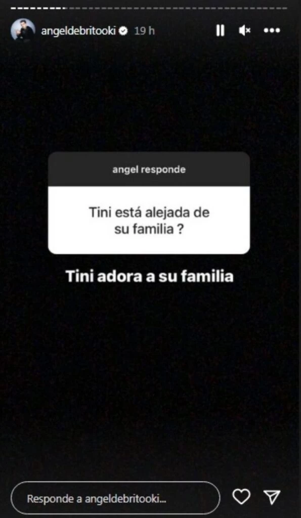 Con el juego de preguntas y respuestas que se hace en Instagram, el periodista recibió la consulta de uno de sus seguidores: "¿Tini está alejada de su familia?". Contundente como siempre, el comunicador de América respondió: "Ella adora a su familia".