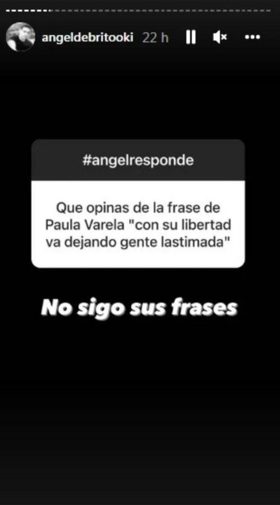 Un usuario le preguntó al periodista:"¿Qué opinás de la frase de Paula Varela 'con su libertad va dejando gente lastimada'?". Así llegó la opinión picante de Ángel que solo atinó a exclamar: "No sigo sus frases". ¿La ninguneó o prefirió abstenerse a emitir su pensamiento en el caso?