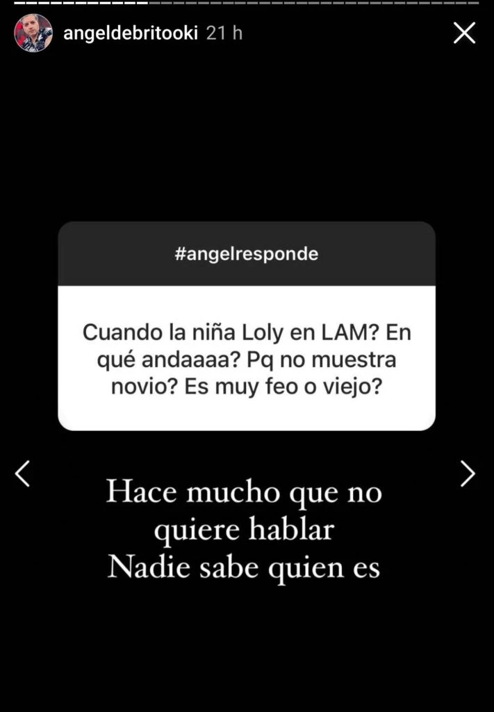 “¿Cuándo la niña Loly en LAM? ¿En qué anda? ¿Por qué no muestra novio? ¿Es muy feo o viejo?”, indagó un usuario al conductor de LAM. ¿Y qué contestó De Brito? Cortito y al pie, como siempre, resumió: “Hace mucho que no quiere hablar. Nadie sabe quién es”.