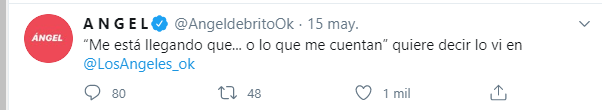 “'Me está llegando que... o lo que me cuentan' quiere decir 'lo vi en @LosAngeles_ok'”, escribió De Brito en su cuenta personal de Twitter.