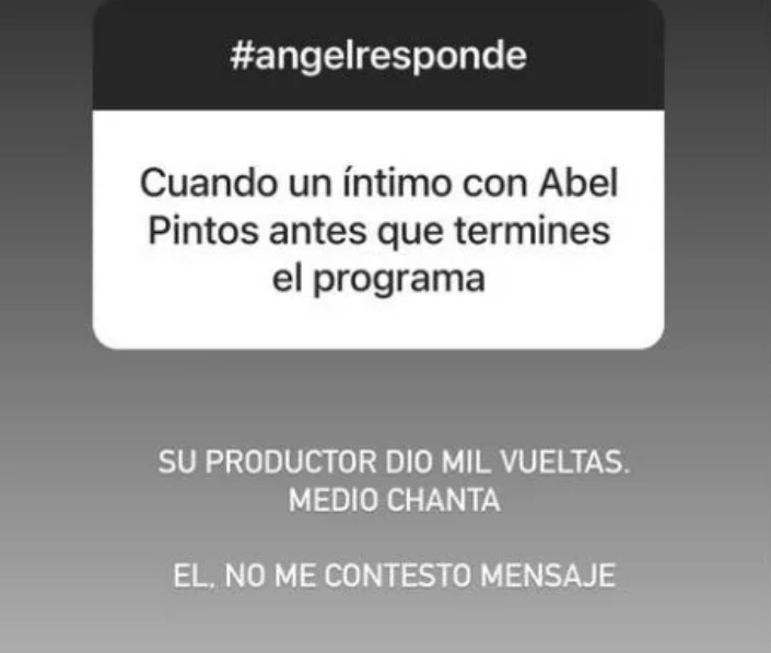“El no contestó mensaje…”, aseguró Ángel, “mandando al frente” a Abel y su actitud a la hora de ser contacto por el periodista con el fin de pedirle una entrevista. ¿La situación se logrará revertir y Pintos terminará yendo al ciclo del conductor? Por delante, aún queda una semana de tiempo para lograrlo, en medio de las dudas por el futuro de las "angelitas".