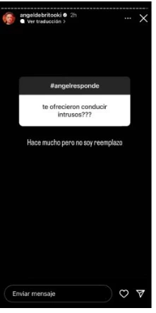 En definitiva, a través de ese mecanismo que tanto le agrada, Ángel recibió la pregunta de un usuario: "¿Te ofrecieron conducir Intrusos?". Lo que se puede entender también frente a las vacaciones de Flor, que provocará la sustitución con el mítico Luis Ventura.