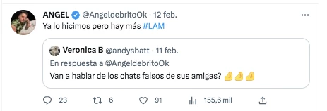En su cuenta de Twitter, el conductor de LAM recibió una pregunta de un usuario, casi una súplica para seguir consumiendo este caso: "¿Hay más chats?”. De esa forma, Ángel encendió la cerilla de una bomba y aseveró que entre sus manos existe un material impresionante: "Si hay chats, hay videos”.