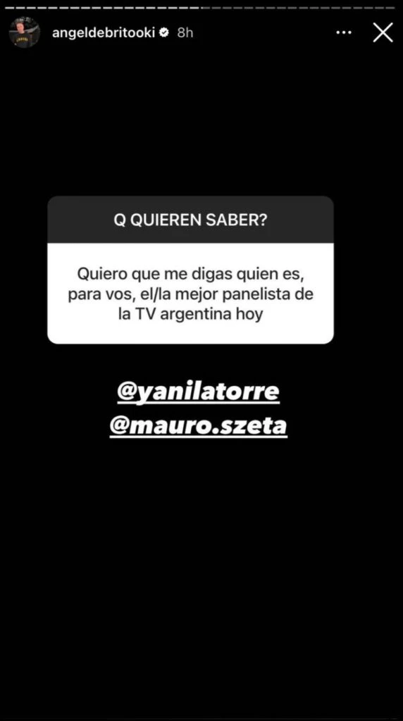 Hace algunas horas un seguidor quiso saber quiénes son los panelistas favoritos de Ángel de Brito y él no dudó en responderle con la mayor sinceridad y hasta etiquetó a los famosos en su publicación para hacerles llegar su admiración: "Yanina Latorre y Mauro Szeta".