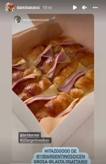 Fue entonces que el conductor cumplió con el pedido de su amigo y Antonela compartió las fotos de cajas con facturas, medialunas con jamón y queso e incluso una súper picada con salames y quesos. Emocionado, Barassi lanzó: "Eh, me chupa un huev… el resto, soy amigo de Anto y Leo. Soy amigo. ¿Entendés lo que te digo?".