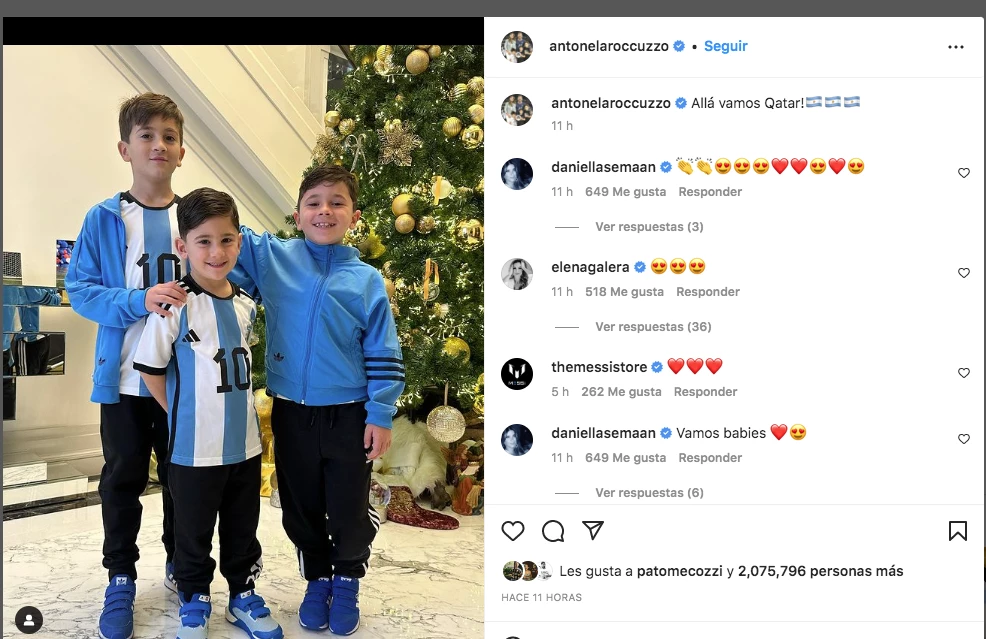 A esa imagen, Antonela le añadió la información vital, dado que escribió: "¡Allá vamos Qatar!". Una tierna manera de comunicar que el núcleo más cercano e importante de Lionel ya se subió al avión para estar listos para el debut de Argentina, que se producirá el martes, a las siete de la mañana.