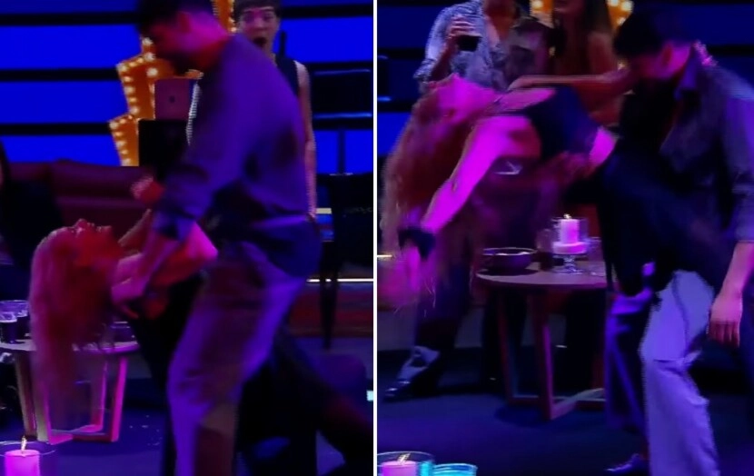 En medio de la música y el ambiente distendido, un clásico tema de striptease comenzó a sonar y, con una silla en el centro de la pista, todo quedó servido para un momento que nadie vio venir. Fue entonces cuando Grecia y Fabio se adueñaron del lugar y comenzaron a desplegar un baile cargado de sensualidad, movimientos lentos y una cercanía que no pasó desapercibida.