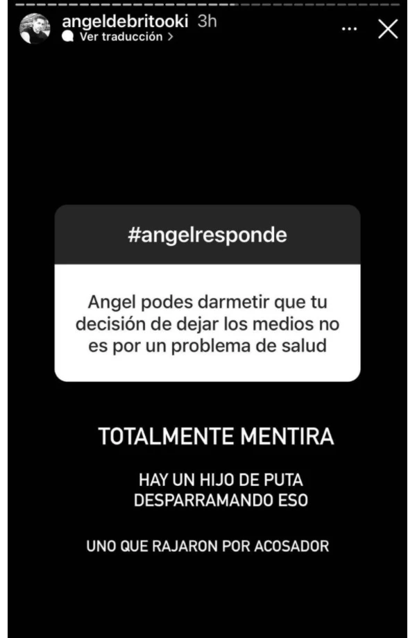 Para terminar con las repercusiones, Ángel de Brito aclaró ciertas cuestiones relacionadas a este tema y dio más detalles de su despedida en sus historias de Instagram.