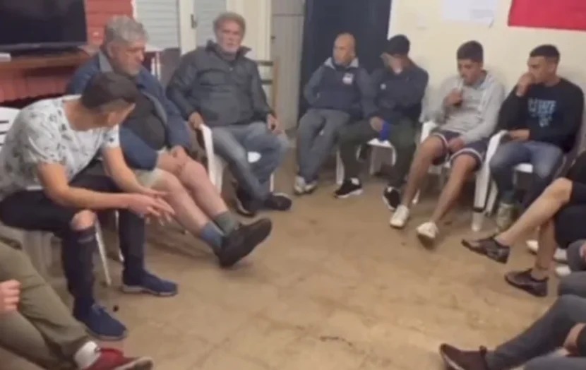 "Este pibe -dice el Teto refiriéndose a uno de los jóvenes que lo rodean en una especie de círculo- lo único que puede hacer es ganar. ¡Está ganando! Y si un día viene y me dice "me dan ganas de matarme" le digo "no flaco, no entendiste nada". Lo que me tiene que decir ahora es que quiere curarse de la lesión porque quiere jugar al fútbol, no lo otro. Lo otro lo está superando con lo que viene haciendo. Porque el nene viene contento, brillaba, la jermu está feliz". El video lo dio a conocer el periodista Juan Etchegoyen.