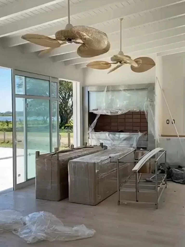 Uno de los aspectos más destacados es la atención a los detalles por parte de la pareja. Las paredes y techos han sido pintados en un suave tono crema, mientras que los pisos son de madera. Además, se han instalado zócalos, aberturas de aluminio, luces, grifería, bachas e inodoros, lo que demuestra el cuidado puesto en cada rincón de esta lujosa residencia.
