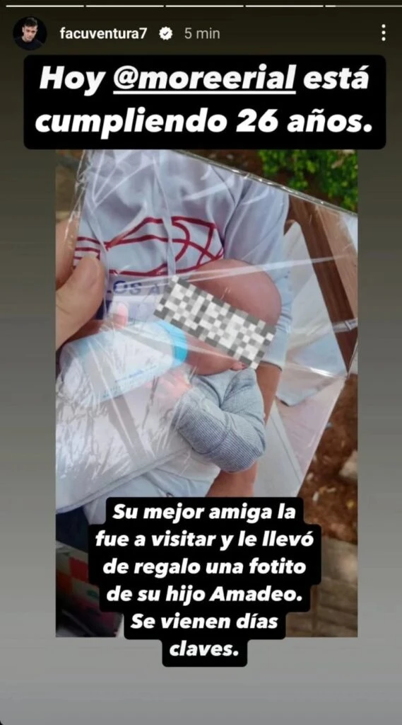 Quien dio detalles alrededor de su situación fue Facundo Ventura, quien a través de sus redes sociales contó cómo vive la hija de Jorge Rial su particular cumpleaños detenida. En este punto, contó que su mejor amiga la visitó en la comisaría y le llevó un especial regalo: una foto de su hijo Amadeo, su bebé que tiene 4 meses de vida.