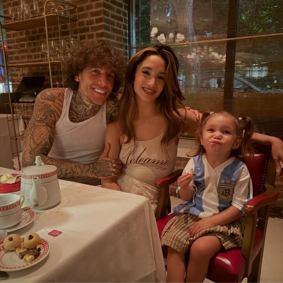 El festejo se dio en un restaurante sofisticado y dentro de un ambiente relajado y familiar. En las fotos, Claudio se mostró cerca de Alex, ambos con sus outfits clásicos a su estilo. Venezia también fue otra gran protagonista: vestida con la camiseta de la Selección argentina, como un símbolo claro y directo hacia su abuelo, y su historia con la albiceleste.