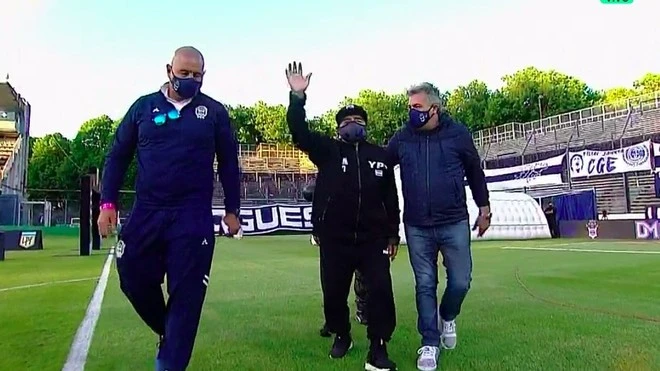 Fue en la cancha de Gimnasia, en ocasión del regreso del campeonato argentino luego de 7 meses y 17 días sin actividad oficial. Su equipo enfrentaba a Patronato y tras los 10 minutos que duró el homenaje se volvió a su casa, ayudado para caminar y casi sin poder pronunciar palabra ni mantenerse en pie. En ese entonces, el campeonato se llamaba Copa de la Liga Profesional. Tras su muerte pasó a llamarse Copa Diego Maradona, algo que nunca supo.