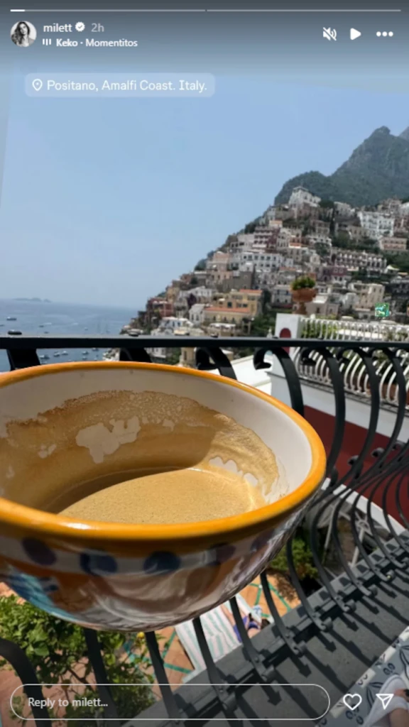 La pareja llegó a Positano pocos días después del cumpleaños número 33 de la peruana. Mediante sus redes sociales compartieron diferentes postales y videos de los que son sus días en el lugar soñado. Fue Milett quien más contenido mostró.