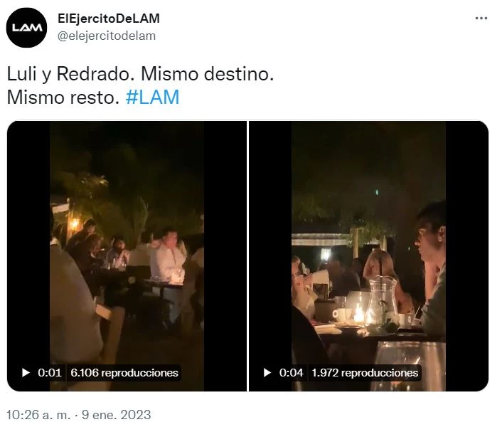 “Luli y Redrado. Mismo destino. Mismo resto”, escribieron en Twitter los CM de El Ejército de LAM, al publicar la prueba de esta maldita ¿coincidencia? La cuenta del programa de Ángel de Brito compartió dos videos por separado en el que se divisa a Lollipop, por un lado, y a Redrado, por otro.