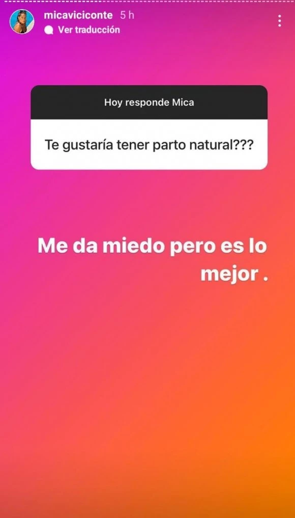 Mica dejó bien en claro que, si el parto natural le da miedo, lo prefiere al método alternativo de la cesárea. “Intentar que sea parto natural y si hay alguna complicación, ya tu sabes”, explicó, fiel a su estilo.