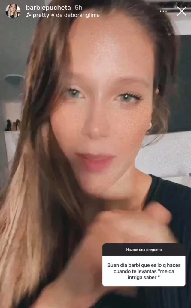 En el video siguiente Barbarita había dejado atrás su cara al natural y ya con un poco de make up en su rostro pasó a la siguiente consulta que le hicieron. “¿Qué es lo que hacés cuando te levantás?”, le escribieron. A lo que la participante de Corte y confección se animó a dar un detalle muy personal al respecto.