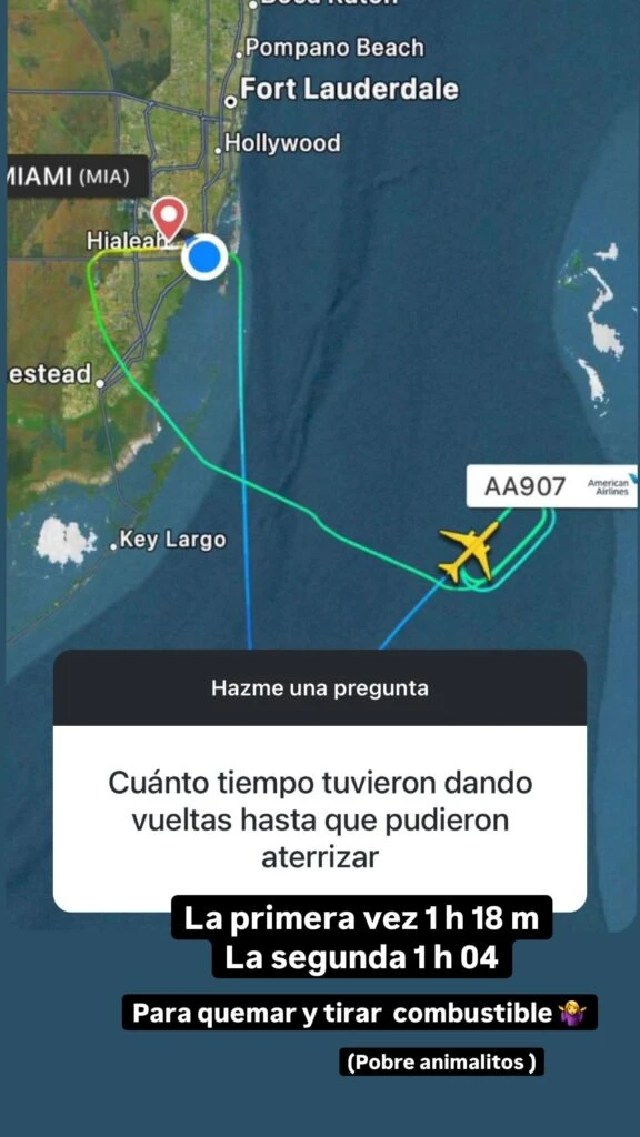 "El avión tuvo un problema de presurización del aire y tuvo que bajar muy fuerte y de golpe para buscar una altura donde eso no pasara, pero nos avisaron que teníamos que volver de manera urgente al aeropuerto de Miami”, avanzó su relato.