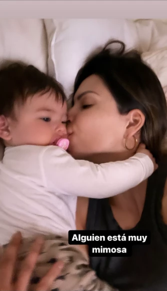 Por último se mostró muy cómoda junto a su bebé: “Alguien está muy mimosa”, lanzó en la fotografía de Sarah con el chupete.