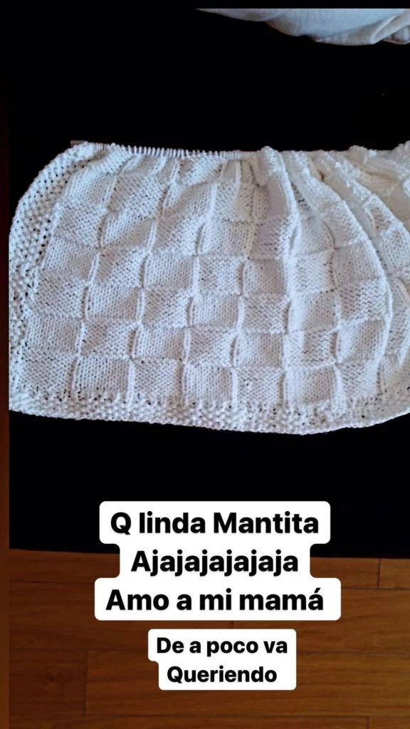 Franco, a pura emoción, primero publicó la imagen de una dulce mantita en color blanco que le está tejiendo su mamá, la futura y flamante abuela. “Que linda mantita. Ja, ja, ja. Amo a mi mamá. De a poco va queriendo”, destacó la pareja de Fernando Burlando.