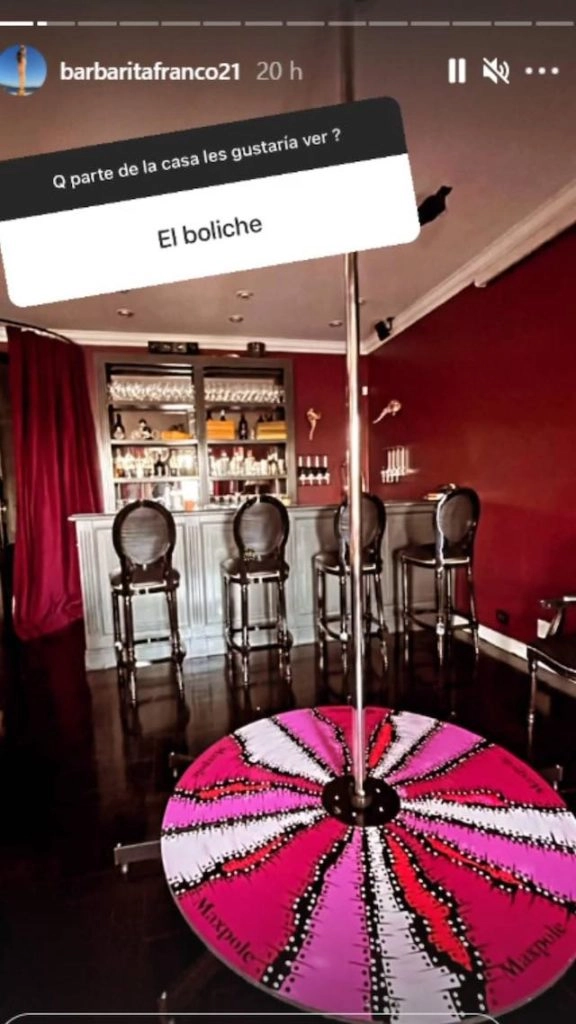 “El boliche”, le pidió otro seguidor. Y si bien ya es sabido que el letrado cuenta con un playroom en el último piso, el cual es utilizado para fiestas y reuniones de amigos, Franco mostró la incorporación del caño de poledance en ese boliche casero que además tiene escenario, equipo de karaoke, luces de disco y barra.